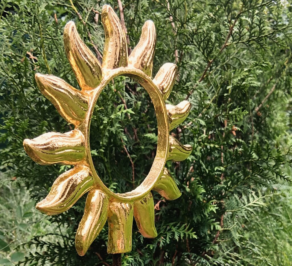 Durch die Kombination aus Glanz- und Mattvergoldung sowie fein gearbeiteten Details entsteht ein lebendiges Relief, das sowohl im Innen- als auch im Außenbereich beeindruckt. Jedes Zeichen wird in sorgfältiger Handarbeit gefertigt und ist ein echtes Unikat.