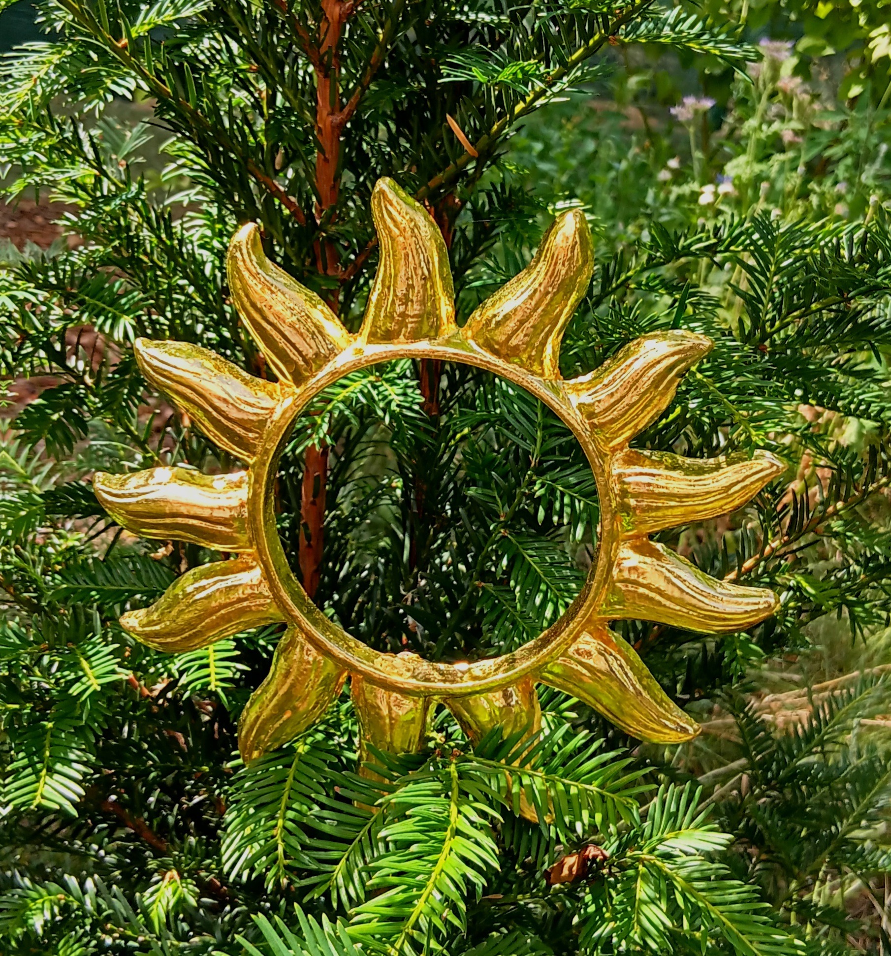 Die Hinterglasvergoldung ist eine besonders edle und traditionsreiche Technik, bei der Blattgold rückseitig auf Glas aufgetragen wird. Das Ergebnis ist eine brillante, spiegelnde Oberfläche mit außergewöhnlicher Tiefe und Leuchtkraft.